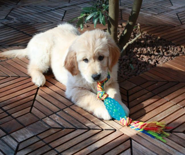 Puppies go through teething between 4 months to 7 months. During this time, as their adult teeth are pushing through their gums, it can be a very uncomfortable for them. Therefore, it is important to also offer your puppy some soothing alternatives. Frozen carrots, rubber teething rings, frozen stuffed kong toys or a wet rope toy that has been frozen will keep them buys and help to ease and sooth the pain.