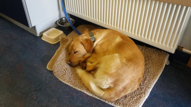 Petra can take her dogs to work which makes sense, since she runs a dog walking business! These are her dogs all tired out after a hard day’s “work”.