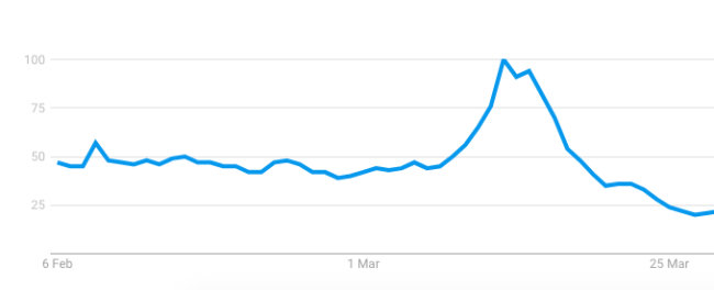 To show what we mean, here is a Google Trends graph from May 6 showing how the search term ‘flights’ has dropped recently. The travel industry has essentially been put on pause.